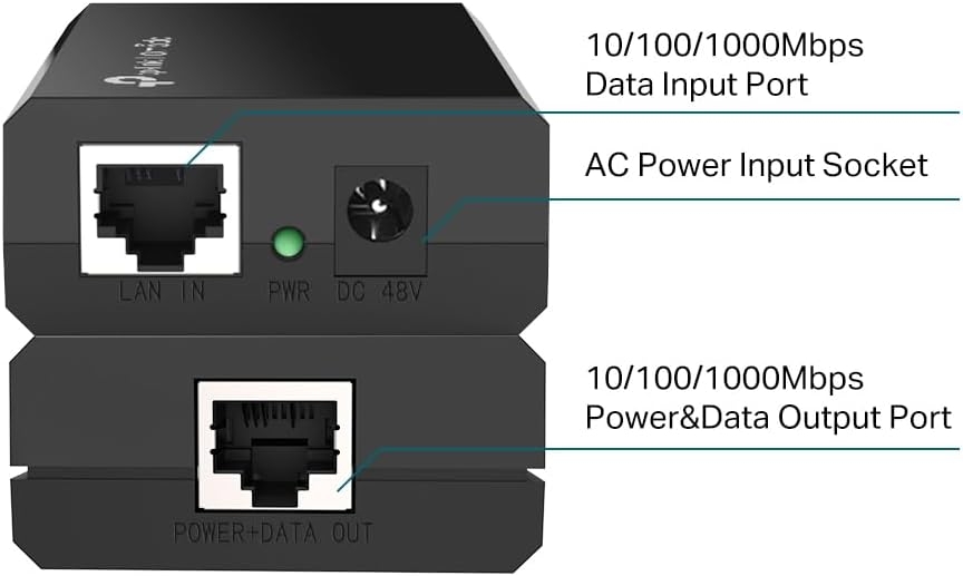 The PoE Injector TL-POE150S fully complies with IEEE 802.3af standard, and can work with all IEEE 802.3af PoE compliant PDs (Powered Devices) or PoE Receiver Adapters, such as TP-LINK’s TL-POE10R, or other equivalent product, to expand your network to where there are no power line or outlet, where you wish to fix device such as AP, IP Camera or IP Phone, etc.